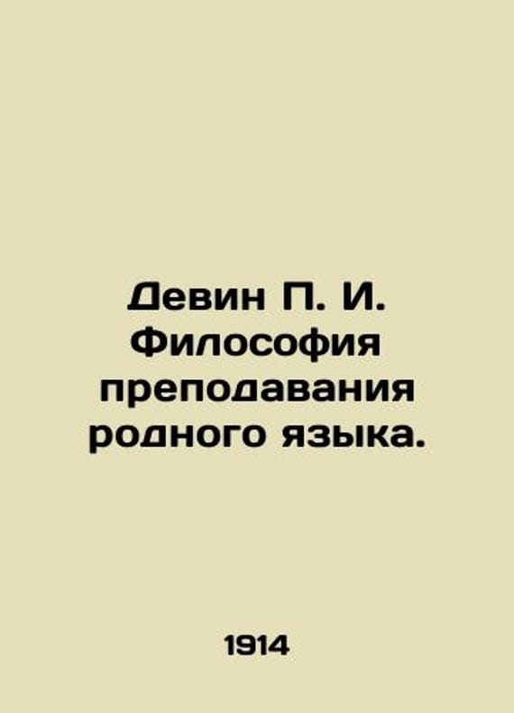 Devin I. Philosophy of Mother Language Teaching. In Russian /Devin I. Filosofiya prepodavaniya rodnogo yazyka. I Issue: Basic Provisions. Petrograd. 1914. We have thousands of titles and often several copies of each title may be available. Please feel free to contact us for a detailed description of the copies available. SKUalbdc0757ae9c7b1b79.