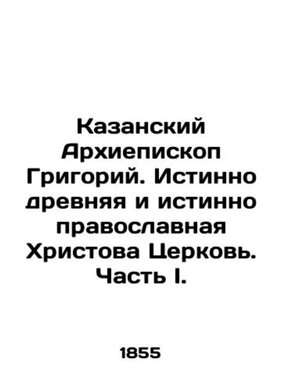 Archbishop Grigory of Kazan. Truly ancient and truly Orthodox Church of Christ. Part I. In Russian (ask us if in doubt)/Kazanskiy Arkhiepiskop Grigoriy. Istinno drevnyaya i istinno pravoslavnaya Khristova Tserkov'. Chast' I. Short description: In Russian (ask us if in doubt).Statement in relation to the verb Old Belief. Second revised and multiplied edition. St. Petersburg Print House by Grigory Trusov. 1855. III + 391s. We have thousands of titles and often several copies of each title may be available. Please feel free to contact us for a detailed description of the copies available. SKUalbdc6da15ee262aecd