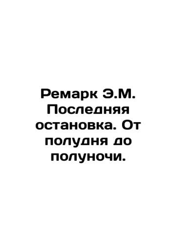 Remark E.M. Last stop. Noon to midnight. In Russian /Remark E.M. Poslednyaya ostanovka. Ot poludnya do polunochi. Series: Library of Classics. Moscow: ACT, 2022. 800 p. We have thousands of titles and often several copies of each title may be available. Please feel free to contact us for a detailed description of the copies available. SKUalbdc9301dbca574e82.