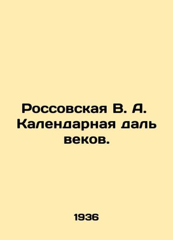 Rosovskaya V.A. The Calendar Age. In Russian /Rossovskaya V. A. Kalendarnaya dal vekov. M-L. United Scientific and Technical Publishing House. 1936. We have thousands of titles and often several copies of each title may be available. Please feel free to contact us for a detailed description of the copies available. SKUalbdc95481fa3a8725a.