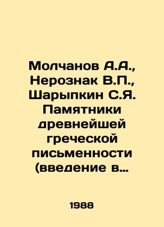 Molchanov A.A., Neroznak V.P., Sharypkin S.Ya. Monuments of the most ancient Greek writing (introduction to Mycenology). In Russian /Molchanov A.A., Neroznak V.P., Sharypkin S.Ya. Pamyatniki drevneyshey grecheskoy pismennosti (vvedenie v mikenologiyu). Responsible Editor, Academician of the Academy of Sciences of the GSSR, T.V. Gamkrelidze. M. Nauka. 1988. 192 p. We have thousands of titles and often several copies of each title may be available. Please feel free to contact us for a detailed description of the copies available. SKUalbdcea9b21306b17f3.