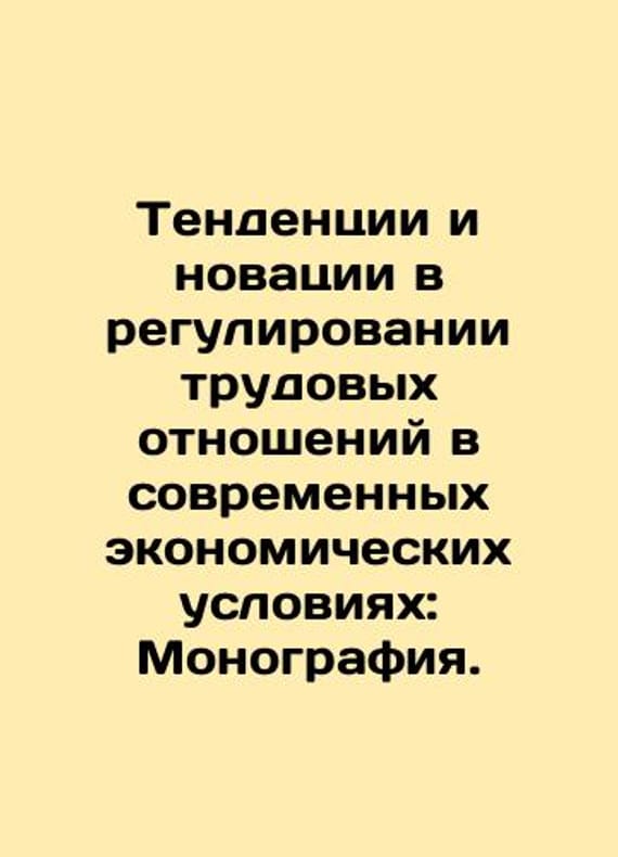 Trends and Innovations in the Regulation of Labor Relations in Contemporary Economic Conditions: Monograph. In Russian /Tendentsii i novatsii v regulirovanii trudovykh otnosheniy v sovremennykh ekonomicheskikh usloviyakh: Monografiya. Moscow Prometheus 2023. 302 p. We have thousands of titles and often several copies of each title may be available. Please feel free to contact us for a detailed description of the copies available. SKUalbdd4386a55e1f9169.