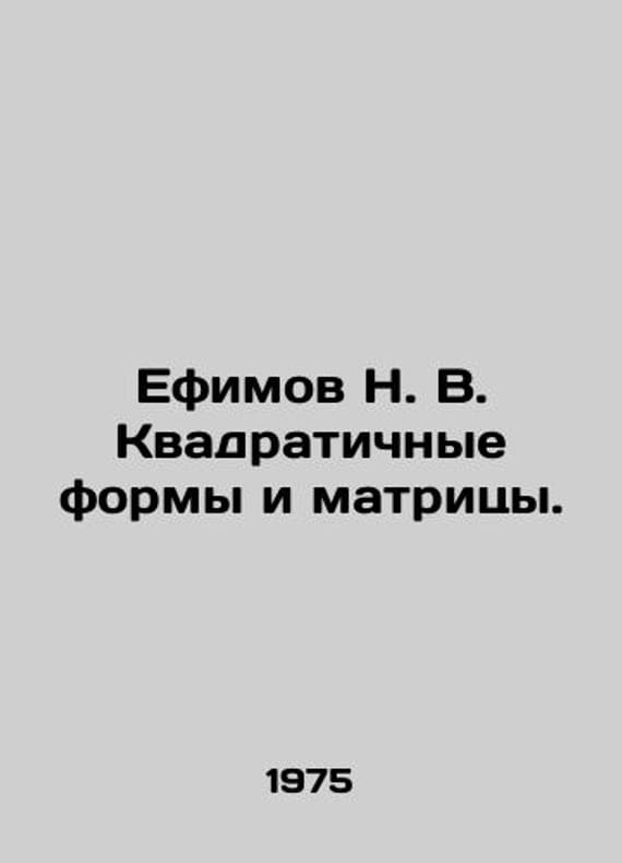 Efimov N. V. Square forms and matrices. In Russian /Efimov N. V. Kvadratichnye formy i matritsy. Series: Selected Chapters of Higher Mathematics for Engineers and Students of Higher Education. Edition 6, Stereotypical. Moscow. Science. 1975. 160 p. We have thousands of titles and often several copies of each title may be available. Please feel free to contact us for a detailed description of the copies available. SKUalbdd530dd69d5a2856.