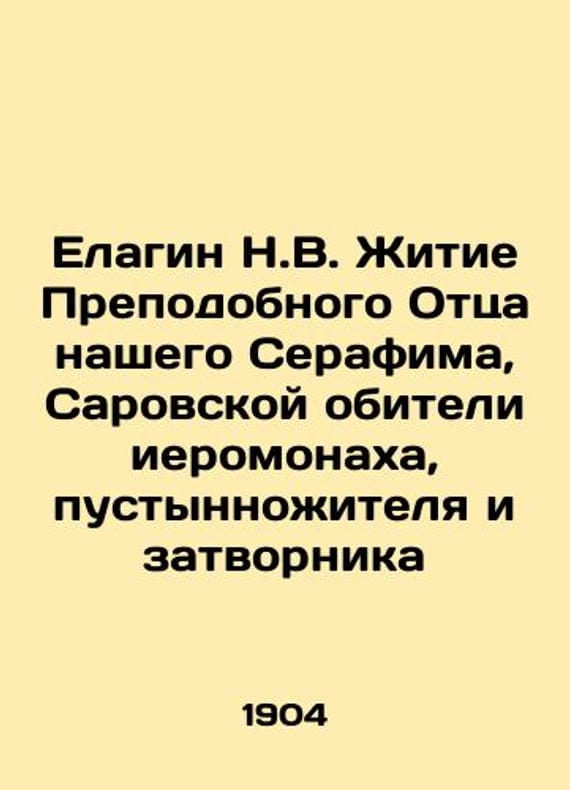 Elagin N.V. The Life of Our Venerable Father Seraphim, the Sarov Convent of a Hieromonk, a Desert Man, and a Closer In Russian /Elagin N.V. Zhitie Prepodobnogo Ottsa nashego Serafima, Sarovskoy obiteli ieromonakha, pustynnozhitelya i zatvornika With the appendices of his instructions and the cell prayer rule. With an image of Father Seraphim and a picture of his handwriting. We have thousands of titles and often several copies of each title may be available. Please feel free to contact us for a detailed description of the copies available. SKUalbdd558b8de98275f9.