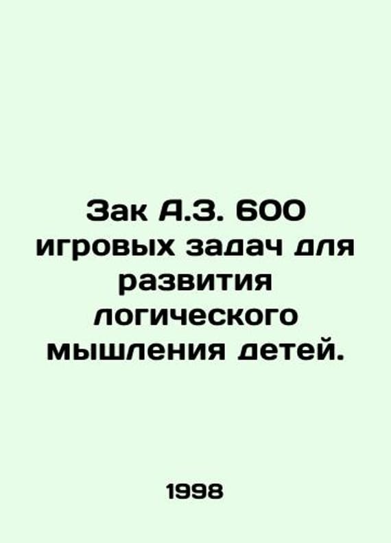 Zack A.Z. 600 game tasks to develop childrens logical thinking. In Russian /Zak A.Z. 600 igrovykh zadach dlya razvitiya logicheskogo myshleniya detey. A Popular Guide for Parents and Educators. Yaroslavl Development Academy 1998. We have thousands of titles and often several copies of each title may be available. Please feel free to contact us for a detailed description of the copies available. SKUalbdd58f7eca025f58e.
