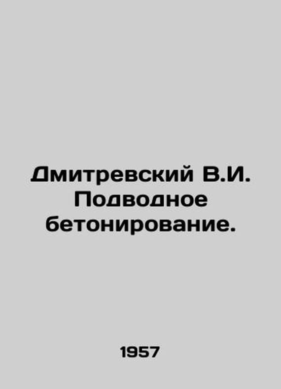 Dmitrevsky V.I. Underwater Concreting. In Russian /Dmitrevskiy V.I. Podvodnoe betonirovanie. M Mor. Transport 1957. We have thousands of titles and often several copies of each title may be available. Please feel free to contact us for a detailed description of the copies available. SKUalbdd622ae79135da13.