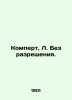 Compert, L. Without permission. In Russian /Kompert, L. Bez razresheniya. The Story of L. Kompert Per. with him. S.P. St. Petersburg. Typo-Lithography by I. Rapoport. 1901. 62, 1 p., 19.0x13.0 sm. We have thousands of titles and often several copies of each title may be available. Please feel free to contact us for a detailed description of the copies available. SKUalbdd62f2059f0f62e6.