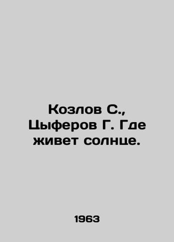 Kozlov S., Tsyferov G. Where the sun lives. In Russian /Kozlov S., Tsyferov G. Gde zhivet solntse. Artists B. Diodorov, G. Kalinovsky. Childrens World. 1963. We have thousands of titles and often several copies of each title may be available. Please feel free to contact us for a detailed description of the copies available. SKUalbdd66896184d3f879.