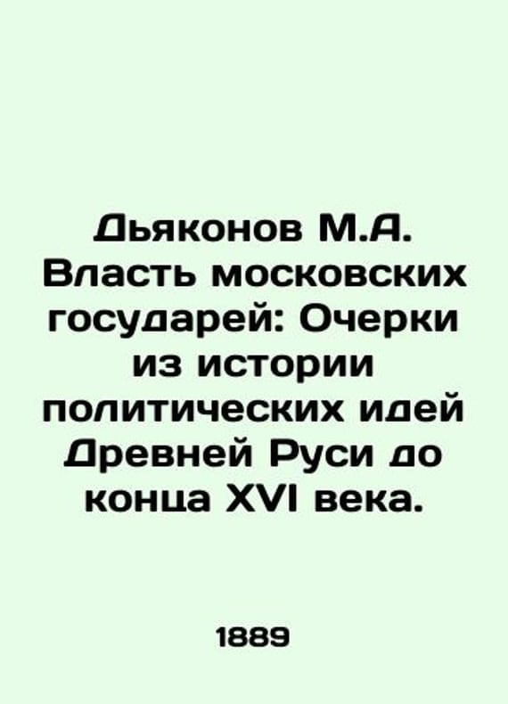Deacons M.A. The Power of Moscow Sovereigns: Essays from the History of Political Ideas in Ancient Russia to the End of the Sixteenth Century. In Russian (ask us if in doubt)/Dyakonov M.A. Vlast moskovskikh gosudarey: Ocherki iz istorii politicheskikh idey Drevney Rusi do kontsa XVI veka. Short description: In Russian (ask us if in doubt).St. Petersburg type. I. Skorokhodov 1889. VI + 224 pp. We have thousands of titles and often several copies of each title may be available. Please feel free to contact us for a detailed description of the copies available. SKUalbdd92fe47e638a7e2
