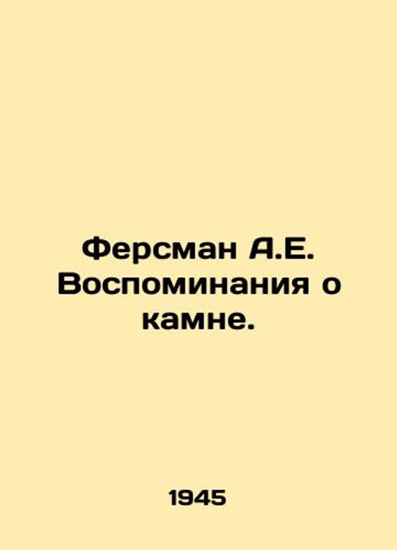 Fersman A.E. Memories of the Stone. In Russian /Fersman A.E. Vospominaniya o kamne. With the forewords of Academician Fersman (who died in May 1949) to both editions. Circulation 5000. M. Publishing House of the USSR Academy of Sciences. 1945. 84 p. We have thousands of titles and often several copies of each title may be available. Please feel free to contact us for a detailed description of the copies available. SKUalbdda5056c10d3f304.