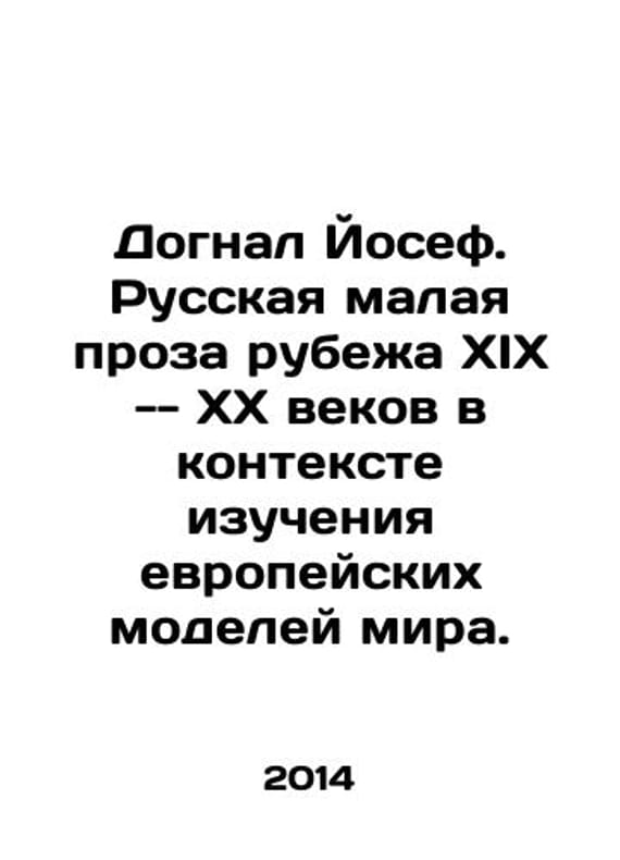Joseph caught up. Russian small prose of the nineteenth and twentieth centuries in the context of studying European models of the world. In Russian /Dognal Yosef. Russkaya malaya proza rubezha XIX -- XX vekov v kontekste izucheniya evropeyskikh modeley mira. Monograph. Translation from Czech by O. L. Berger. Nizhny Novgorod: Published by N. I. Lobachevsky National University, 2014. 184 p. We have thousands of titles and often several copies of each title may be available. Please feel free to contact us for a detailed description of the copies available. SKUalbddcd6c3967305e6a.