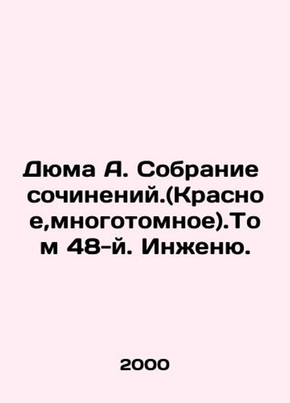 Dumas A. Collection of Works. (Red, multi-volume). Volume 48. Engineering. In Russian /Dyuma A. Sobranie sochineniy.(Krasnoe,mnogotomnoe).Tom 48-y. Inzhenyu. Trans.French L. Tokarev, Comments by T. Gioeva, F. Ryabov. Illustrations by E. Ganeshin. Moscow: Art-Business Center. 2000. 640s. We have thousands of titles and often several copies of each title may be available. Please feel free to contact us for a detailed description of the copies available. SKUalbddfe767298d0c912.