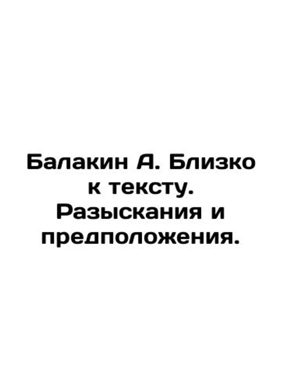 Balakin A. Close to the text. Investigations and assumptions. In Russian /Balakin A. Blizko k tekstu. Razyskaniya i predpolozheniya. Palmyra 2022. 378s. We have thousands of titles and often several copies of each title may be available. Please feel free to contact us for a detailed description of the copies available. SKUalbde274df76535782d.