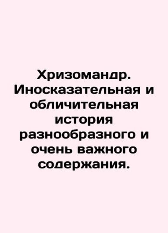 Chrysomandrum. A telling and revealing story of diverse and very important content. In Russian /Khrizomandr. Inoskazatelnaya i oblichitelnaya istoriya raznoobraznogo i ochen vazhnogo soderzhaniya. Series: Production of the Future Kaliningrad BFU named after I. Kant 2023. 256 p. We have thousands of titles and often several copies of each title may be available. Please feel free to contact us for a detailed description of the copies available. SKUalbde583b795556323d.