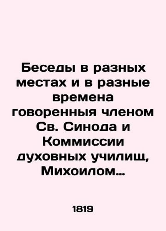 Conversations in different places and at different times spoken by the member of the Holy Synod and the Commission of Theological Schools Mikhoil Metropolitan of Novgorod In Russian (ask us if in doubt)/Besedy v raznykh mestakh i v raznye vremena govorennyya chlenom Sv. Sinoda i Kommissii dukhovnykh uchilishch Mikhoilom Mitropolitom Novgorodskim St. Petersburg Estonia and Finland and Holy Trinity Alexander Nevsky Lavra Archimandrite and Cavalier. Volume V. C-Pb. Type. Jos. Ioannesov. 1819 IV 468c. SKUalbdeb67187f78eefda.
