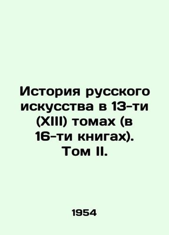 The History of Russian Art in 13 (XIII) Volumes (in 16 Books). Volume II. In Russian /Istoriya russkogo iskusstva v 13-ti (XIII) tomakh (v 16-ti knigakh). Tom II. Under the general editorship of Academician I. E. Grabar, Corresponding Member of the Academy of Arts of the USSR V.S. Kemenov and Corresponding Member of the Academy of Sciences of the USSR V.N. Lazarev. Design of the artist S. N. Tarasov. Institute of the History of Arts of the Academy of Sciences of the USSR. We have thousands of titles and often several copies of each title may be available. Please feel free to contact us for a detailed description of the copies available. SKUalbdf16f9b9cfbaf5fb.