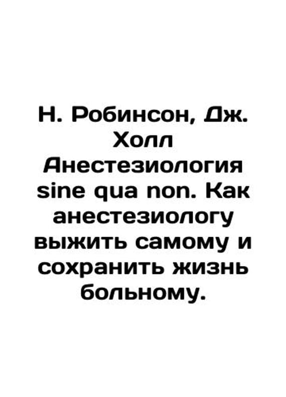 N. Robinson, J. Hall Anesthesiology sine qua non. How an anesthesiologist can survive on his own and keep a patient alive. In Russian /N. Robinson, Dzh. Kholl Anesteziologiya sine qua non. Kak anesteziologu vyzhit samomu i sokhranit zhizn bolnomu. M Bean 2024 223 pp. We have thousands of titles and often several copies of each title may be available. Please feel free to contact us for a detailed description of the copies available. SKUalbdf5a2eddfd602fbf.