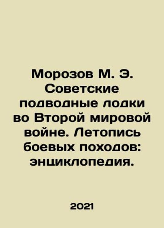 Morozov M. Soviet Submarines in World War II. Chronicle of Combat Marches. Encyclopedia In Russian /Morozov M. Sovetskie podvodnye lodki vo Vtoroy mirovoy voyne. Letopis boevykh pokhodov. Entsiklopediya M. 2021. 736 p. We have thousands of titles and often several copies of each title may be available. Please feel free to contact us for a detailed description of the copies available. SKUalb6e9bb49668b00959.