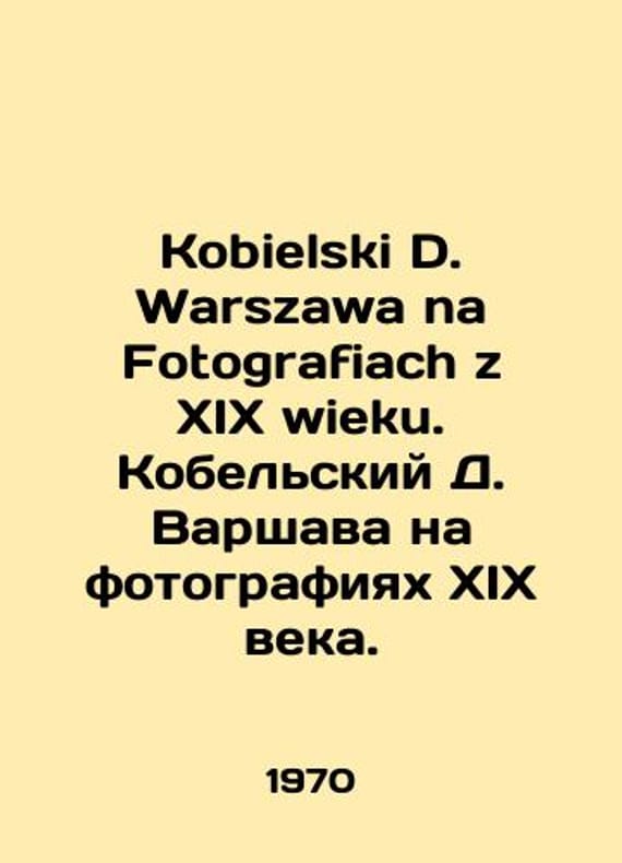 Kobielski D. Warszawa na Fotografiach z XIX wieku. Kobelski D. Warsaw in photos of XIX century. In Polish /Kobielski D. Warszawa na Fotografiach z XIX wieku. Kobelskiy D. Varshava na fotografiyakh XIX veka. In Polish. Warsaw 1970. We have thousands of titles and often several copies of each title may be available. Please feel free to contact us for a detailed description of the copies available. SKUalbdf7124208e2016d5.