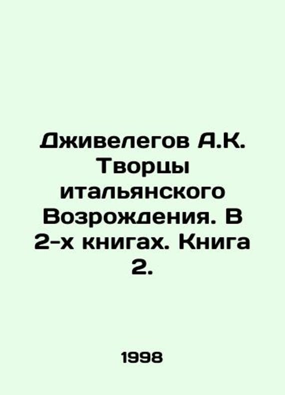 Jivelegov A.K. Creators of the Italian Renaissance. In 2 books. Book 2. In Russian /Dzhivelegov A.K. Tvortsy italyanskogo Vozrozhdeniya. V 2-kh knigakh. Kniga 2. General Edited by R. Khlodovsky. M Terra 1998. The second book publishes widely known Essays of the Italian Renaissance and literary portraits of Leonardo da Vinci, P. Bracciolini, A. Firenzuola, N. Machiavelli, F. Guicciardini, D. Vasari. We have thousands of titles and often several copies of each title may be available. Please feel free to contact us for a detailed description of the copies available. SKUalbdfa25ea5f15337ea.