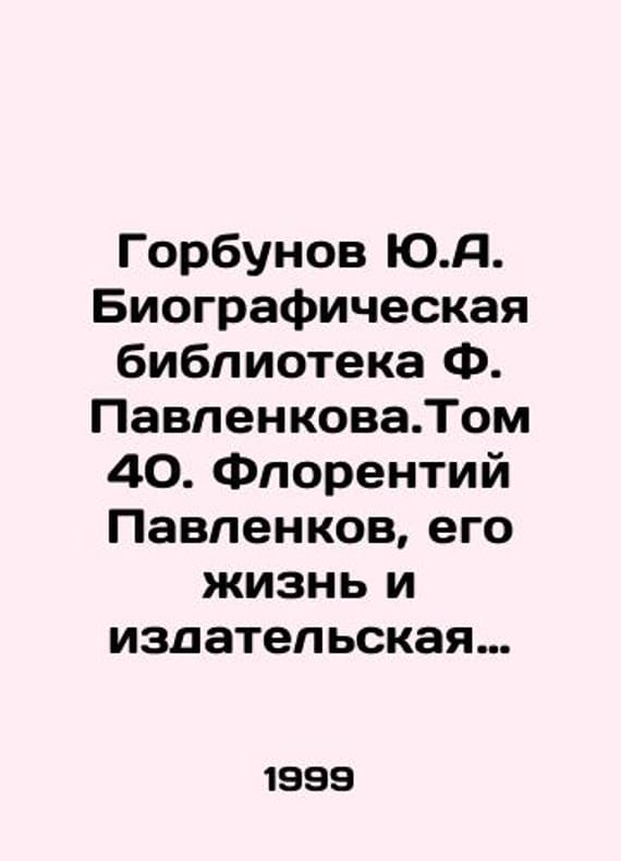 Gorbunov Yu.A. F. Pavlenkova Biographical Library. Volume 40. Florenty Pavlenkov, his life and publishing activities. In Russian /Gorbunov Yu.A. Biograficheskaya biblioteka F. Pavlenkova.Tom 40. Florentiy Pavlenkov, ego zhizn i izdatelskaya deyatelnost. Biographical Essay. Series: The Lives of Great People. Chelyabinsk. Ural, LTD. 1999. 288 p. We have thousands of titles and often several copies of each title may be available. Please feel free to contact us for a detailed description of the copies available. SKUalbdfaa4a5955c0bab9.