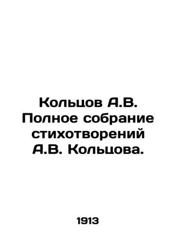 Koltsov A.V. Complete collection of poems by A.V. Koltsov. In Russian /Koltsov A.V. Polnoe sobranie stikhotvoreniy A.V. Koltsova. M. Edition by I.D. Sytin, 1913. XXIII, 184.s. We have thousands of titles and often several copies of each title may be available. Please feel free to contact us for a detailed description of the copies available. SKUalbdfc725130853102b.