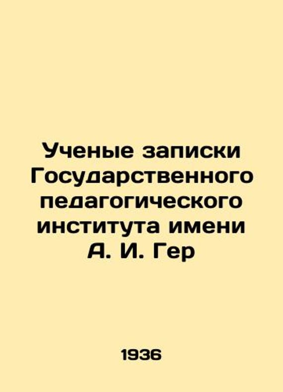 Academic Memoranda of the A. I. Ger State Pedagogical Institute In Russian /Uchenye zapiski Gosudarstvennogo pedagogicheskogo instituta imeni A. I. Ger L. 1936. 401 p. We have thousands of titles and often several copies of each title may be available. Please feel free to contact us for a detailed description of the copies available. SKUalbdfc82841af743228.