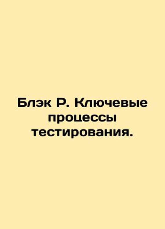 Black R. Key Test Processes. In Russian /Blek R. Klyuchevye protsessy testirovaniya. Translation from English by M. LORI 2021. 576 p. We have thousands of titles and often several copies of each title may be available. Please feel free to contact us for a detailed description of the copies available. SKUalbdfe33f0eb7f5e226.
