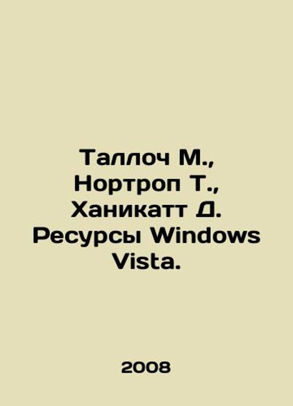 Tulloch M., Northrop T., Honeycutt D. Windows Vista Resources. In Russian /Talloch M., Nortrop T., Khanikatt D. Resursy Windows Vista. M. Russian edition 2008. We have thousands of titles and often several copies of each title may be available. Please feel free to contact us for a detailed description of the copies available. SKUalbe00838b40a79ca1e.