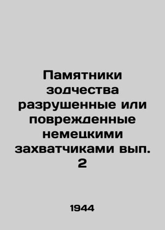 Architectural monuments destroyed or damaged by the German invaders, p. 2 In Russian /Pamyatniki zodchestva razrushennye ili povrezhdennye nemetskimi zakhvatchikami vyp. 2 Academy of Architecture of the USSR 1944. 72 p. We have thousands of titles and often several copies of each title may be available. Please feel free to contact us for a detailed description of the copies available. SKUalbe00e8b646ec54356.