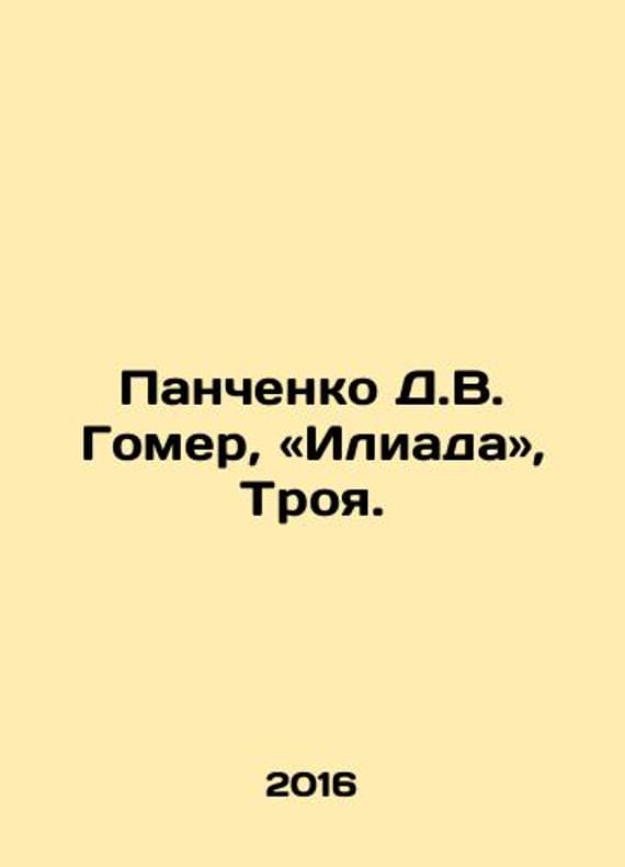 D.W. Homer Panchenko, The Iliad, Troy. In Russian /Panchenko D.V. Gomer, «Iliada», Troya. St. Petersburg European University Publishing House. 2016. 304 pp. We have thousands of titles and often several copies of each title may be available. Please feel free to contact us for a detailed description of the copies available. SKUalbe0433fed1093d6e0.