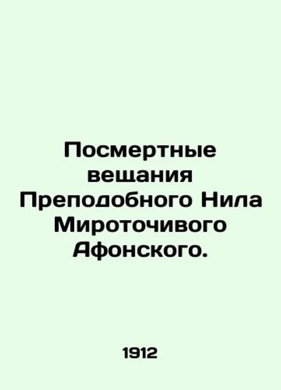 Post-mortem broadcasts of the Venerable Nile of Myrrh-streaming Athos. In Russian /Posmertnye veshchaniya Prepodobnogo Nila Mirotochivogo Afonskogo. Reprint from St. Petersburg, 1912. Sunday, 2003. 512 p. We have thousands of titles and often several copies of each title may be available. Please feel free to contact us for a detailed description of the copies available. SKUalbe06b7525c06ba8f0.