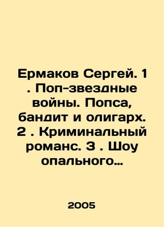 Ermakov Sergey. 1. Pop Star Wars. Pops, Bandit, and Oligarch. 2. A Criminal Romance. 3. The Show of a Disgraced Oligarch (a set of 3 books) In Russian /Ermakov Sergey. 1. Pop-zvezdnye voyny.Popsa, bandit i oligarkh. 2. Kriminalnyy romans. 3. Shou opalnogo oligarkha ( komplkt iz 3 knig ) Series: Pops Moscow Exmo 2005-2006.We have thousands of titles and often several copies of each title may be available. Please feel free to contact us for a detailed description of the copies available. SKUalbe0713c7f29dbf498.