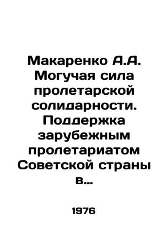 Makarenko A.A. The Powerful Force of Proletarian Solidarity. Support by the Foreign Proletariat of the Soviet Country in 1921-1925. In Russian /Makarenko A.A. Moguchaya sila proletarskoy solidarnosti. Podderzhka zarubezhnym proletariatom Sovetskoy strany v 1921-1925gg. M Politizdat 1976. 319c,. We have thousands of titles and often several copies of each title may be available. Please feel free to contact us for a detailed description of the copies available. SKUalbe0b7c1f639cbef15.