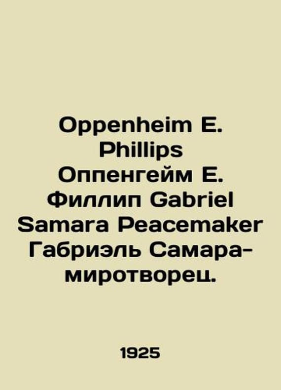 Oppenheim E. Phillips Oppenheim E. Phillip Gabriel Samara Peacemaker Gabriel Samara-Peacemaker. In Russian /Oppenheim E. Phillips Oppengeym E. Fillip Gabriel Samara Peacemaker Gabriel Samara-mirotvorets. Boston 1925, 323 p. We have thousands of titles and often several copies of each title may be available. Please feel free to contact us for a detailed description of the copies available. SKUalbe0ed030e8e52bded.