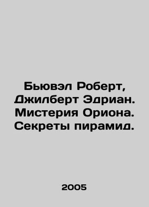 Buwell Robert, Gilbert Adrian. The Mystery of Orion. The Secrets of the Pyramids. In Russian /Byuvel Robert, Dzhilbert Edrian. Misteriya Oriona. Sekrety piramid. Series: Secrets of Ancient Civilizations. Translated from English by M. Zvonarev. M Eksmo 2005. We have thousands of titles and often several copies of each title may be available. Please feel free to contact us for a detailed description of the copies available. SKUalbe10890a9ee272dc0.