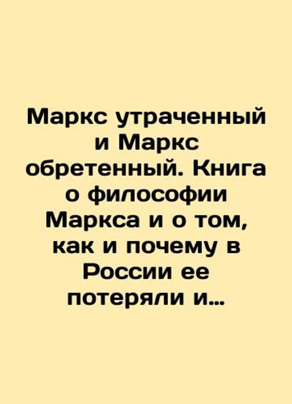 Marx Lost and Marx Found. A book about Marxs philosophy and how and why it was lost and rediscovered in Russia. In Russian /Marks utrachennyy i Marks obretennyy. Kniga o filosofii Marksa i o tom, kak i pochemu v Rossii ee poteryali i obreli v vnov. M.-Yekaterinburg Institute of Physics and Technology, Ural Branch, Russian Academy of Sciences, Cabinet Scientist 2021. 368 p. We have thousands of titles and often several copies of each title may be available. Please feel free to contact us for a detailed description of the copies available. SKUalb5014f9c39773990a.