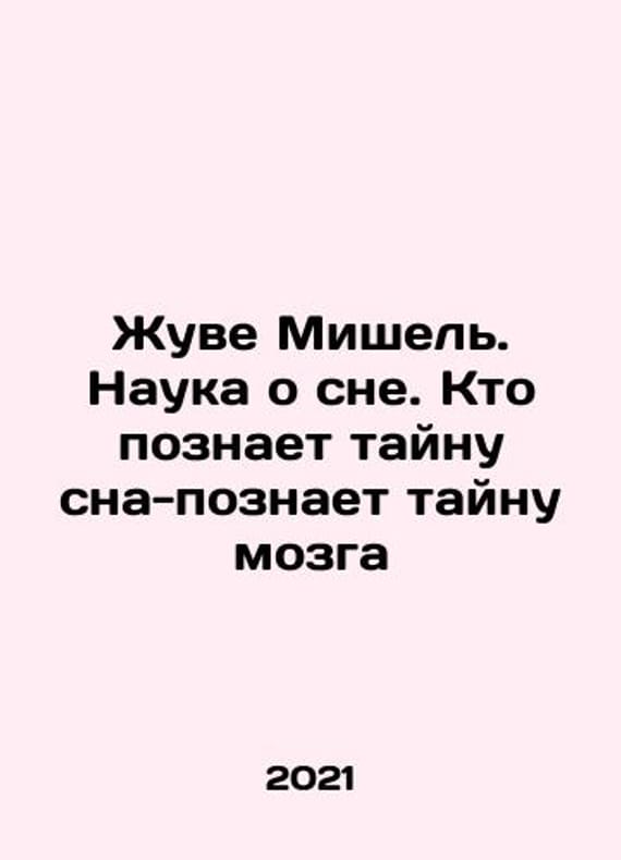 Juve Michel: The Science of Sleep. Who Knows the Secret of Sleep-Who Knows the Secret of the Brain In Russian /Zhuve Mishel. Nauka o sne. Kto poznaet taynu sna-poznaet taynu mozga Series: Scientific pop for all ACT 2021. 256 pp. We have thousands of titles and often several copies of each title may be available. Please feel free to contact us for a detailed description of the copies available. SKUalbe128a0a6f00444e9.