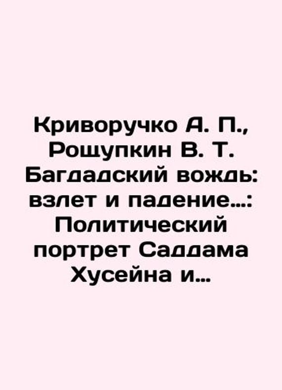 Krivoruchko A. P., Roshchupkin V. T. The Baghdad Leader: The Rise and Fall of Saddam Hussein and His Regime: A Political Portrait on a Regional and Global Background. In Russian /Krivoruchko A. P., Roshchupkin V. T. Bagdadskiy vozhd: vzlet i padenie: Politicheskiy portret Saddama Khuseyna i ego rezhima na regionalnom i globalnom fone. M. Prospekt 2023. 560 p. We have thousands of titles and often several copies of each title may be available. Please feel free to contact us for a detailed description of the copies available. SKUalbe1b95c74d19575c7.