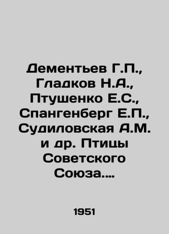 Dementiev G.P. Gladkov N.A. Ptushenko E.S. Spangenberg E.P. Sudilovskaya A.M. and others Birds of the Soviet Union. In six volumes In Russian (ask us if in doubt)/Dementev G.P. Gladkov N.A. Ptushenko E.S. Spangenberg E.P. Sudilovskaya A.M. i dr. Ptitsy Sovetskogo Soyuza. V shesti tomakh Short description: In Russian (ask us if in doubt).Moscow: Soviet Science 1951-1954. 652 + 480 + 680 + 640 + 803 + 792s. We have thousands of titles and often several copies of each title may be available. Please feel free to contact us for a detailed description of the copies available. SKUalbe1ed124c0c945f70