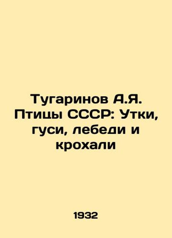 Tugarinov A.Ya. Birds of the USSR: Ducks, geese, swans and crocodiles In Russian /Tugarinov A.Ya. Ptitsy SSSR: Utki, gusi, lebedi i krokhali Series: Determiners of the Fauna of the USSR, published by the Zoological Institute of the Academy of Sciences of the USSR, 1932. We have thousands of titles and often several copies of each title may be available. Please feel free to contact us for a detailed description of the copies available. SKUalbe22fac090b4451b5.