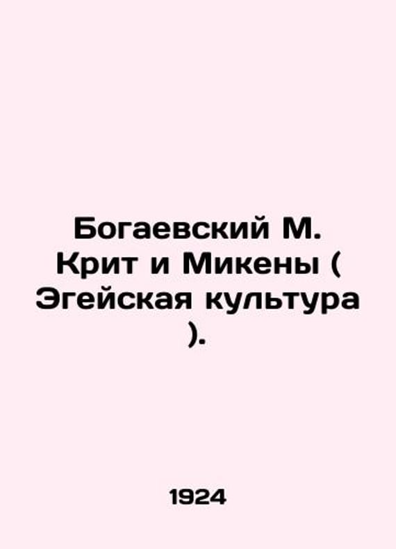 Bogaevsky M. Crete and Mycenae (Aegean culture). In Russian /Bogaevskiy M. Krit i Mikeny ( Egeyskaya kultura ). M-L. State Publishing House. 1924. 258 p. We have thousands of titles and often several copies of each title may be available. Please feel free to contact us for a detailed description of the copies available. SKUalbe255883ab3adbc17.