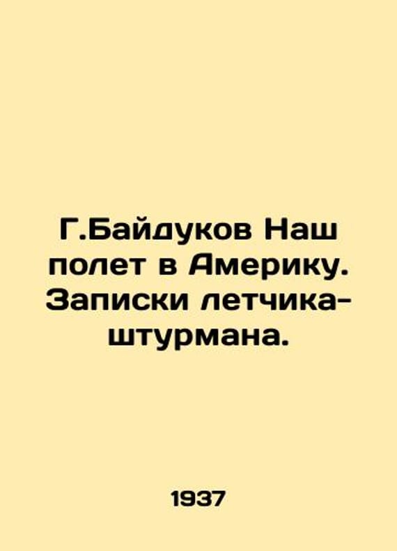 G.Baidukov Our flight to America. Notes from the navigator pilot. In Russian /G.Baydukov Nash polet v Ameriku. Zapiski letchika-shturmana. M. Partizdat of the Central Committee of the C.P.S.U. (b) 1937. 36s. We have thousands of titles and often several copies of each title may be available. Please feel free to contact us for a detailed description of the copies available. SKUalbe2b703bad0405b5f.