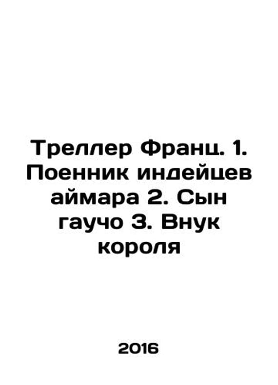 Treller Franz. 1. Aymara Indian poet 2. Son of gaucho 3. grandson of the king In Russian /Treller Frants. 1. Poennik indeytsev aymara 2. Syn gaucho 3. Vnuk korolya Yaroslavl Favorite Bay of Adventures 2015, 2016, 2017 490c,. We have thousands of titles and often several copies of each title may be available. Please feel free to contact us for a detailed description of the copies available. SKUalbe30ddfa1e01b5b61.