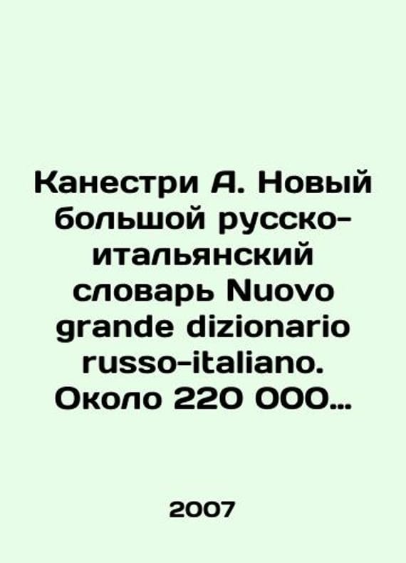 Canestri A. The new big Russian-Italian dictionary Nuovo grande dizionario english-italiano. About 220,000 dictionary articles. In Russian /Kanestri A. Novyy bolshoy russko-italyanskiy slovar Nuovo grande dizionario russo-italiano. Okolo 220 000 slovarnykh statey. 2nd edition. M. Russkiy Language 2007. 848 p. We have thousands of titles and often several copies of each title may be available. Please feel free to contact us for a detailed description of the copies available. SKUalbe3210d2ea64261c5.