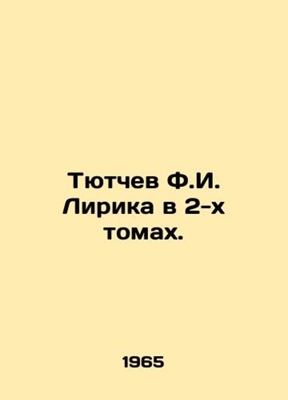 Tyutchev F.I. Lyric in 2 Volumes. In Russian /Tyutchev F.I. Lirika v 2-kh tomakh. Series: Literary Monuments of M. Science 1965. We have thousands of titles and often several copies of each title may be available. Please feel free to contact us for a detailed description of the copies available. SKUalbe3291208a11fc86b.