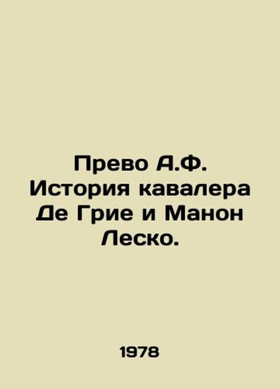 Prevot A.F. The Story of Cavalry De Grier and Manon Lescaut. In Russian /Prevo A.F. Istoriya kavalera De Grie i Manon Lesko. Literary Monuments of M. Science 1978. 288 p. We have thousands of titles and often several copies of each title may be available. Please feel free to contact us for a detailed description of the copies available. SKUalbe34a66f53f46c330.