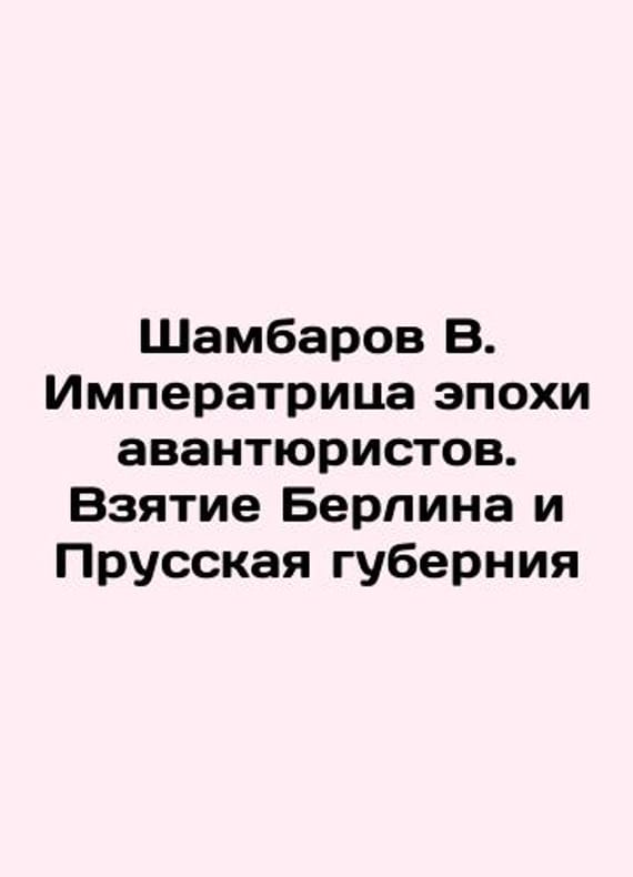 Shambarov V. Empress of the Age of Adventurers. Taking Berlin and Prussian Governorate In Russian /Shambarov V. Imperatritsa epokhi avantyuristov. Vzyatie Berlina i Prusskaya guberniya Moscow Motherland 2024. 452 p. We have thousands of titles and often several copies of each title may be available. Please feel free to contact us for a detailed description of the copies available. SKUalbe36811112f36f5e0.
