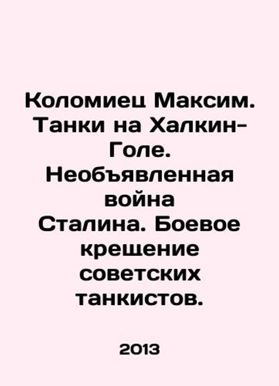 Maksim Kolomiyets. Tanks on Halkin Gola. Stalins Undeclared War. A baptism of fire for Soviet tank men. In Russian /Kolomiets Maksim. Tanki na Khalkin-Gole. Neobyavlennaya voyna Stalina.Boevoe kreshchenie sovetskikh tankistov. Series: War and We Tank Collection by M Yauz, EXMO, 2013. 128 p. We have thousands of titles and often several copies of each title may be available. Please feel free to contact us for a detailed description of the copies available. SKUalbe3bbe2fb949ddca7.