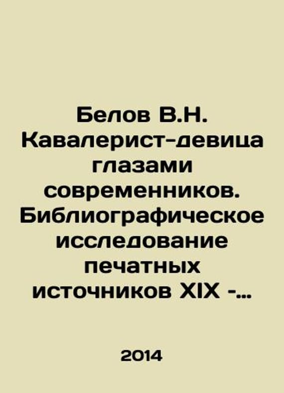 Belov V.N. Cavalerist maiden through the eyes of contemporaries. A bibliographic study of published sources of the nineteenth and early twentieth centuries about Nadezhda Durova. In Russian (ask us if in doubt)/Belov V.N. Kavalerist-devitsa glazami sovremennikov. Bibliograficheskoe issledovanie pechatnykh istochnikov XIX nachala KhKh vv. o Nadezhde Andreevne Durovoy.. Elabuga Edition of the Elabuga Branch of the Russian Geographical Society 2014. 311c. SKUalbe3c1c4efef6e781b.